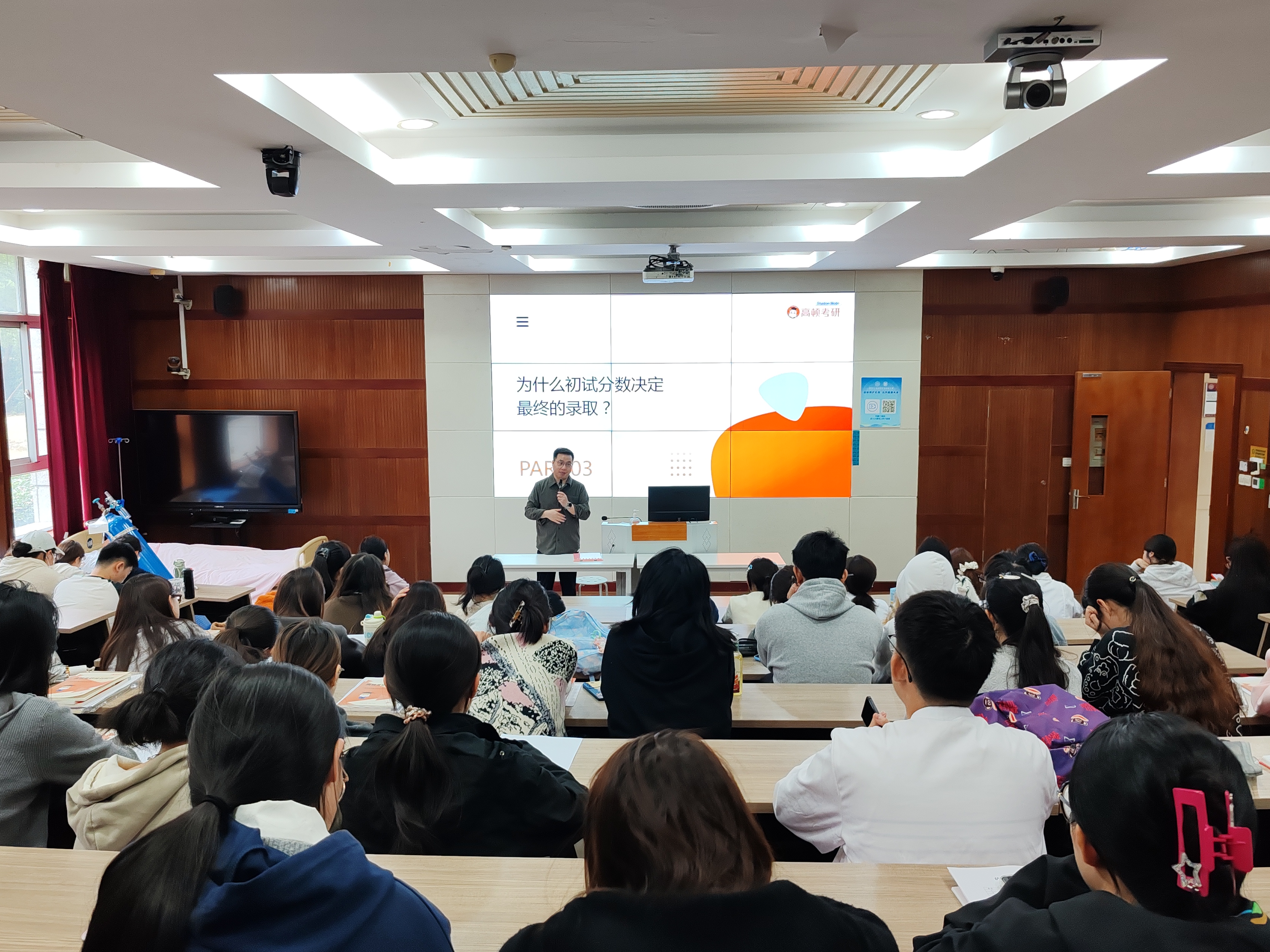 讲座伊始,刘潮歌老师直击当前考研核心趋势,指出公司产品已进入“学硕趋向直博,专硕强化就业”的“分层时代”。他以哈尔滨工业大学等高校的推免政策为例,深入剖析了近年来高校推免比例上升、统招名额收紧所带来的竞争格局变化,并结合就业市场与社会心态等多维数据,引导同学们理性看待考研热,树立“以实力赢得未来”的坚定信念。