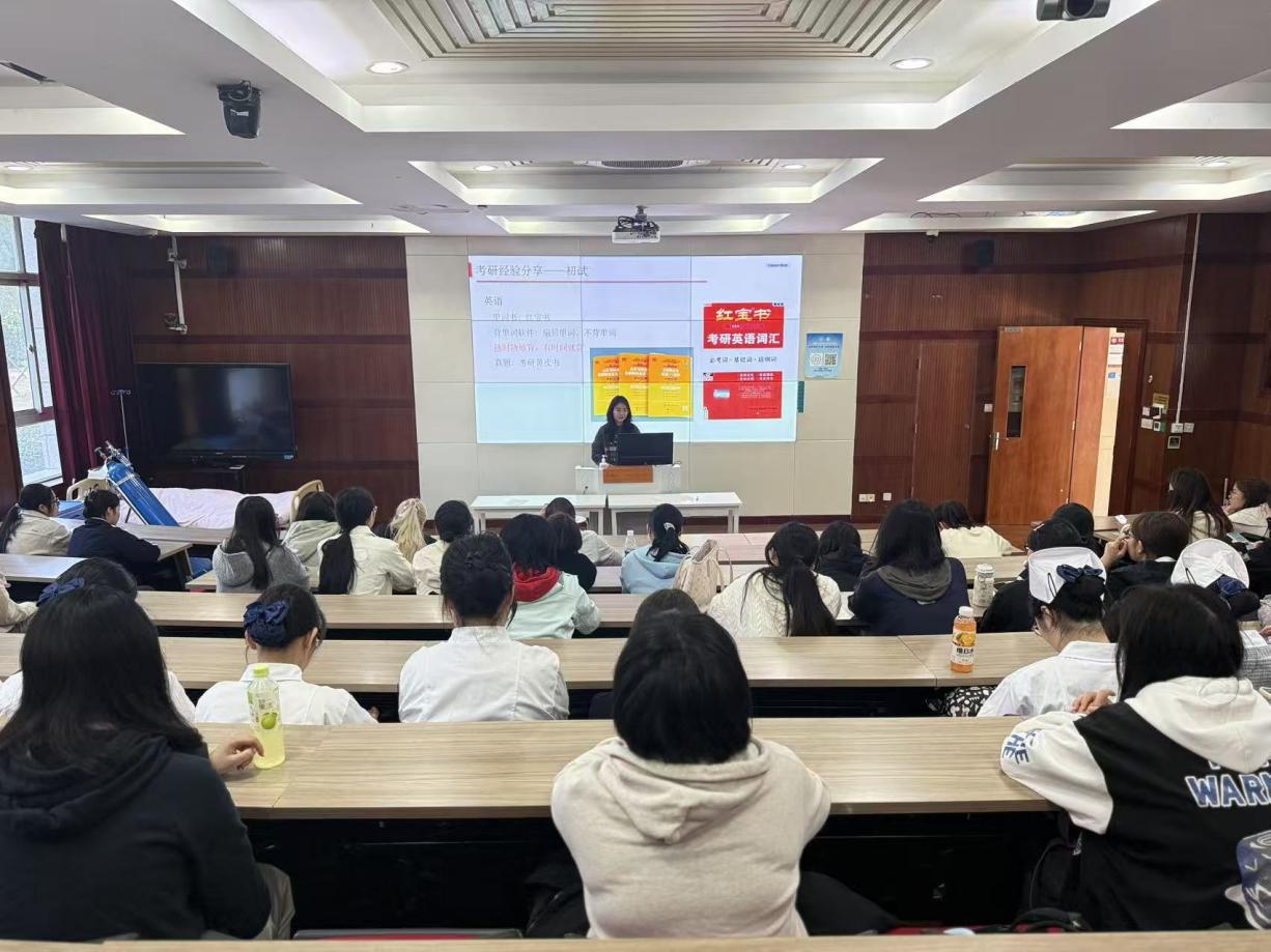 随后的考研经验分享环节,林可淇聚焦院校选择、复习策略、科目备考与心态调节四大模块,系统梳理了备考全程关键节点,详细讲解了如何精准定位目标院校、科学制定复习计划,并针对护理专业不同科目的重点与难点,分享了高效学习方法和高频考点。在心态调节方面,她以亲身经历为例,鼓励大家在高压复习中保持平稳心态、合理规划时间。这些来自“过来人”的真诚分享,为正处于备考迷茫期的同学们点亮了前行的方向,极大增强了大家的考研信心。互动环节气氛热烈,同学们积极提问,围绕实习与备考的平衡、专业课复习策略等实际问题与林可淇展开深入交流,现场反响热烈。