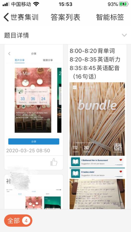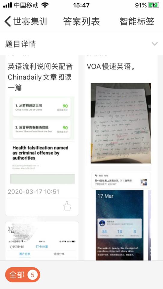 8:20-8:40选手们按照老师布置的学习任务,在英语学习APP上完成英语晨读练习,包括英语跟读、听力练习,专业词汇等多方面,在平台上完成学习成果的打卡。