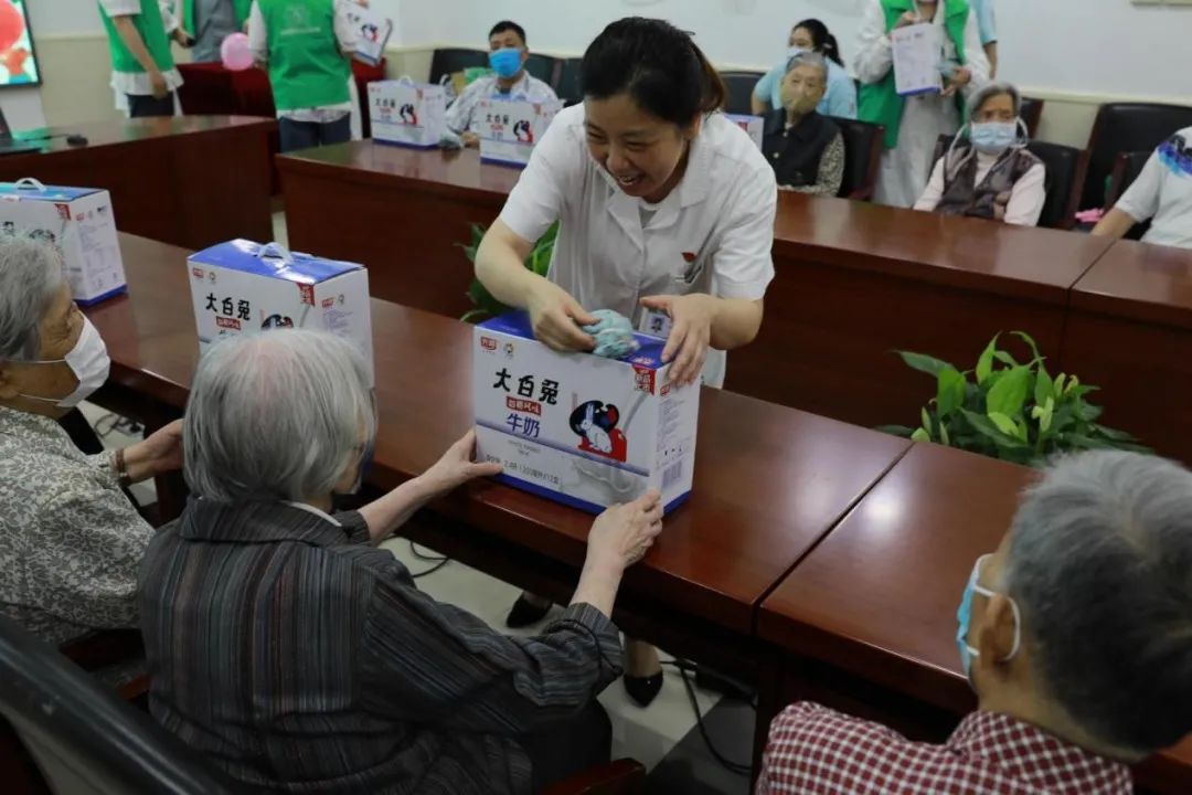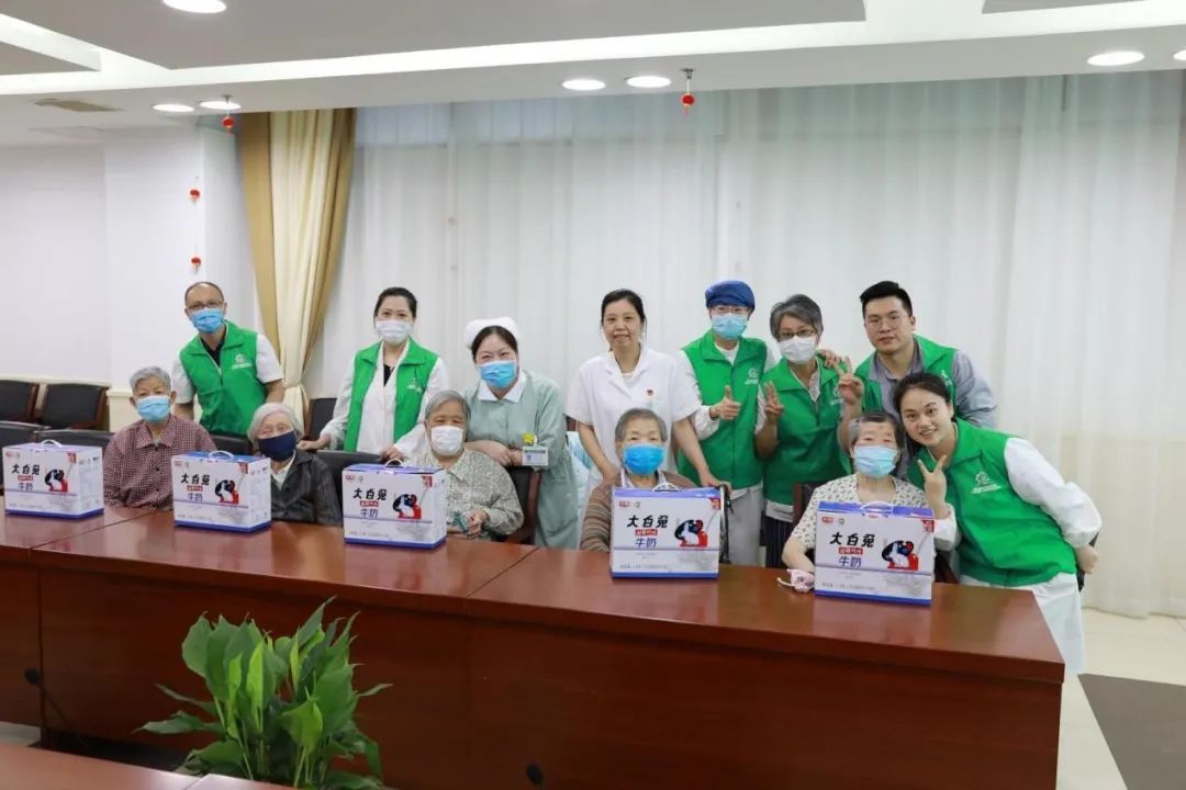 今年3月10日和6月1日,团市委和上海青年志愿者协会“金晖行动”共向养护院捐赠了160袋光明奶粉和90提光明牛奶,收到物质后,基地老师第一时间向团市委和上海青协表达了感谢,并分发给每位老人。