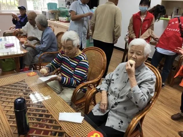 2020年9月24日,志愿者们同老人们一起制作鲜肉榨菜月饼,将成品与社区活动中心的老人一同分享,共迎中秋佳节。