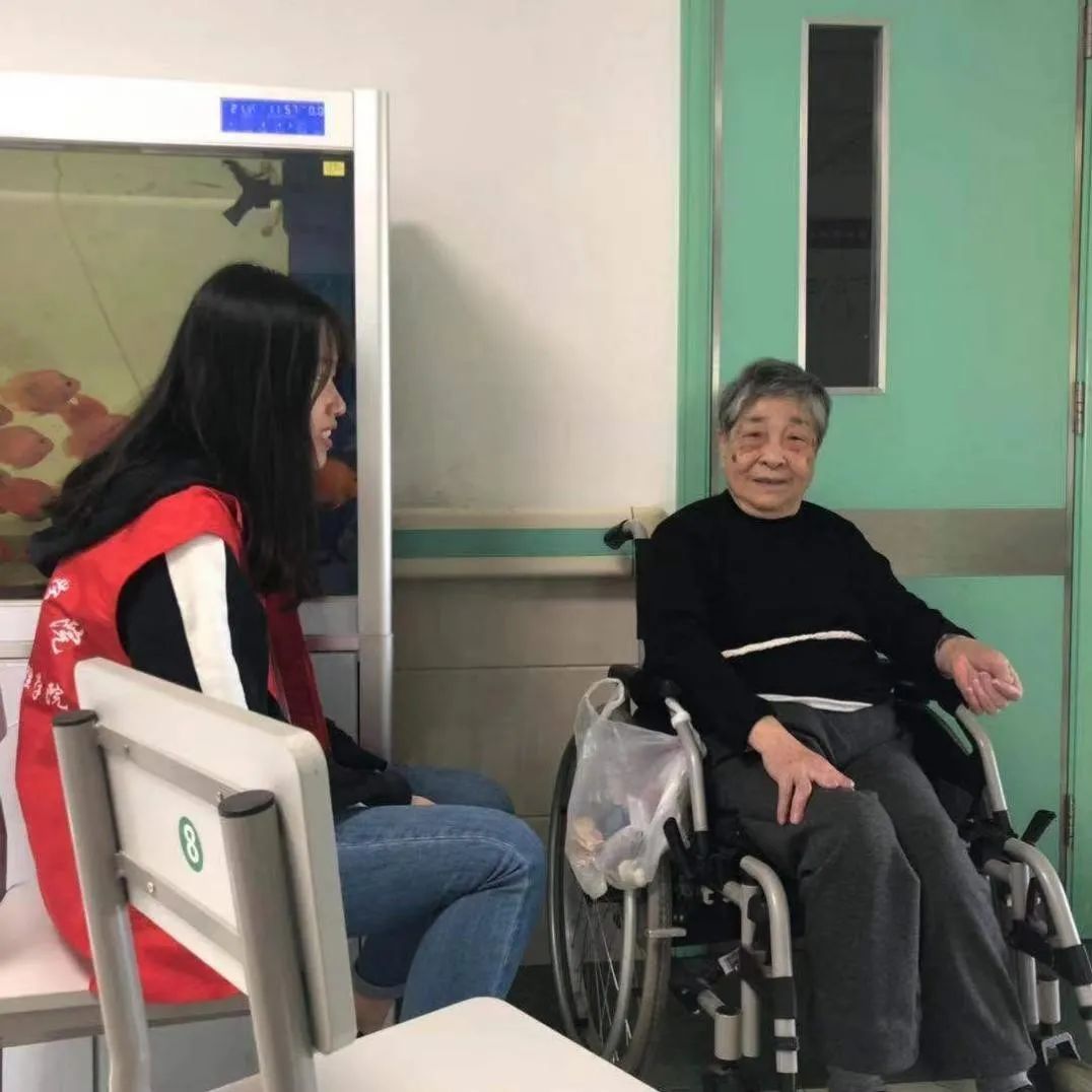 “微光”志愿服务团队的同学们陪老人聊天,缓解老人住在病房的苦闷。通过给老人播放音乐,或者抚摸他们的手,让他们感受到志愿者们的陪伴与关怀。