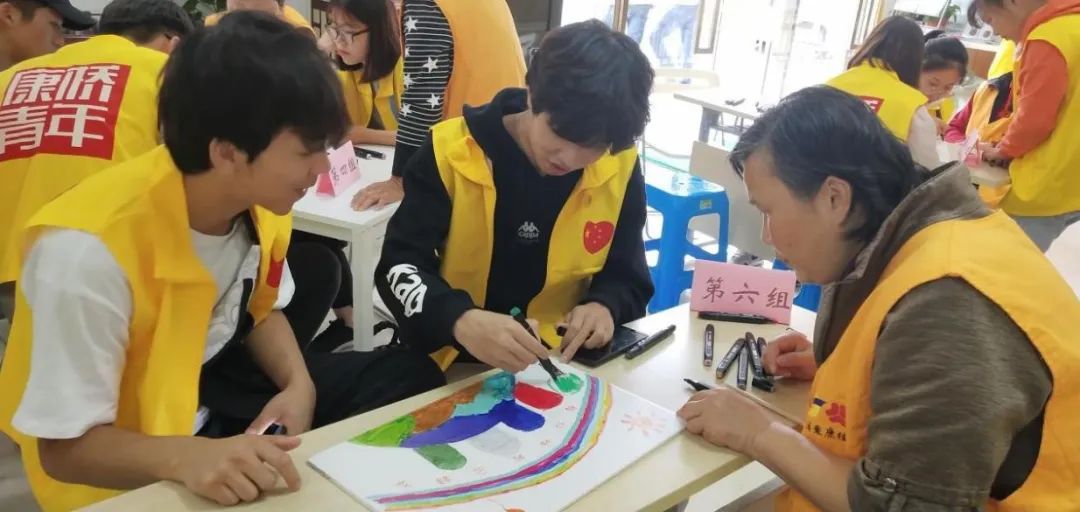 志愿者们陪伴康桥社区卫生服务中心的老人进行舒缓游戏、制作手工等小型文娱类活动,与老人一同动手,丰富社区老人的生活,为他们带去欢声笑语。