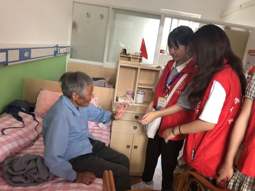 在活动过程中志愿者们除了帮助护理员打扫卫生外,还陪院内的老人们一起聊天,听他们讲养老院里的故事,聊了聊他们对医护人员的看法,让志愿者们感受到了老人们的亲切,增进了志愿者和老人之间的感情,为老人们带去温暖。