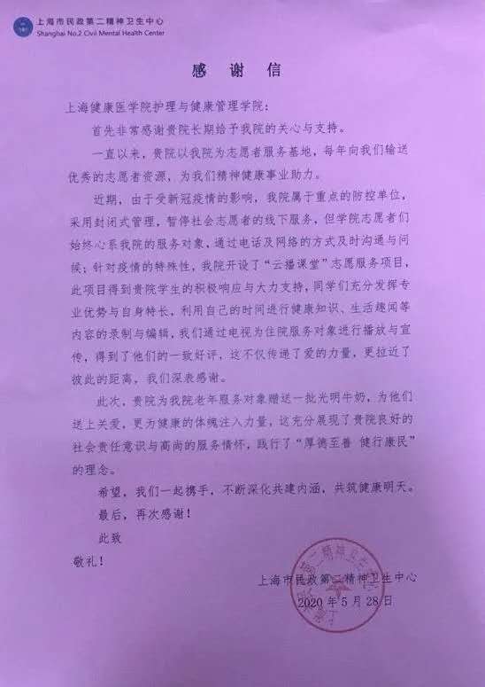 【志愿服务】因爱相聚,把爱传递——第二精神卫生中心的一封感谢信