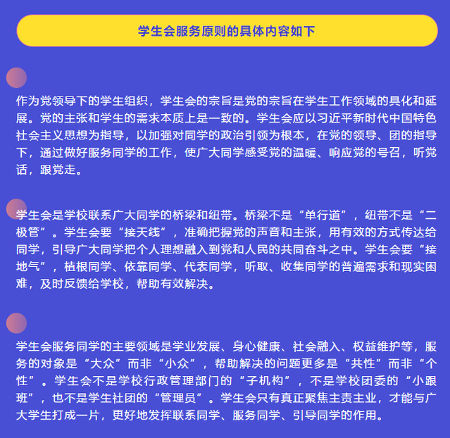孙小涵同学结合《让员工会回归服务同学的改革十招》,详细介绍了员工会服务原则与改革的指导思想。