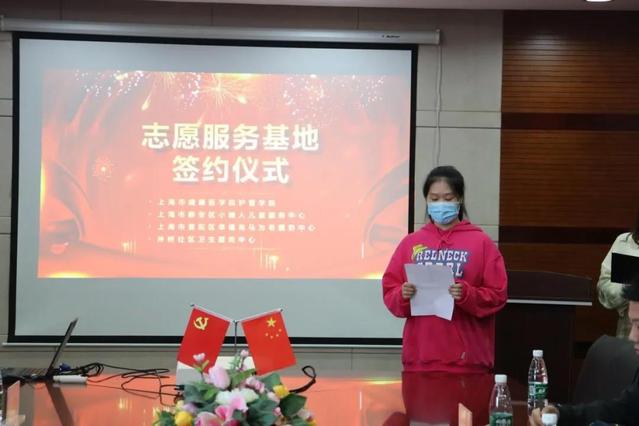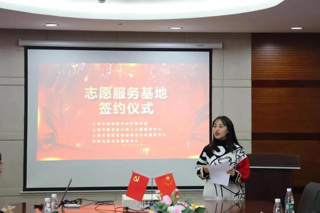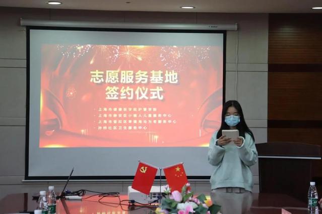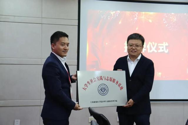 88858cc永利官网团总支书记宋飞老师与上海市普陀区幸福海马为老服务中心签约授牌