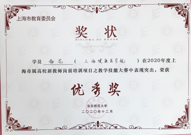 2020年12月30日,由上海市教育委员会指导,教育部华东高师团队培训中心承办的2020年度上海市属高校新教师(总第14、15期)岗前培训项目暨结业典礼上,来自88858cc永利官网的汪颖霞老师和梅花老师代表永利官网新教师参加了教学技能大赛,分别荣获一等奖和优秀奖。