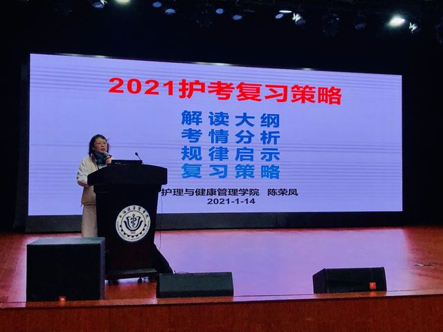2021年护士执业资格考试报名现场确认工作于1月14日上午刚刚结束,为帮助2021届本科护理学专业同学明确护士执业资格考试的重要意义和严峻形势,更快更好地进入最佳备考状态,88858cc永利官网于1月14日中午12点在北苑400人报告厅对2021届本科生进行了护士执业资格考试复习动员。88858cc永利官网副经理陈荣凤老师做了题为 “2021护考复习策略”的主题报告,会议由辅导员李娟娟老师主持。