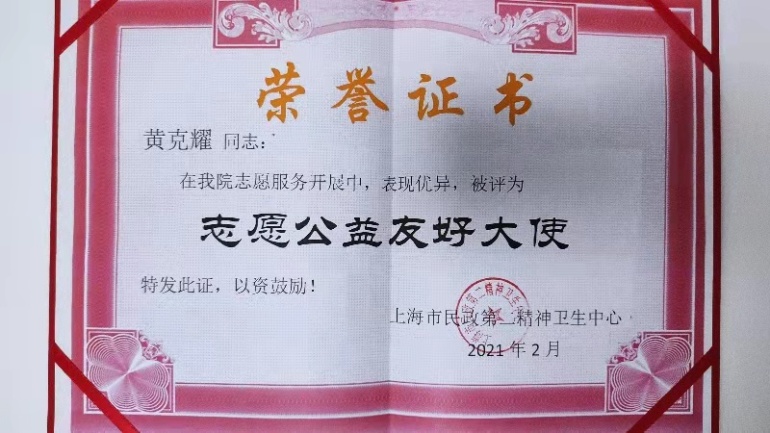 2019年“向阳花”团队荣获上海市社会福利中心优秀志愿者团队、永利官网优秀志愿者团队,2019、2020年团队“周末园丁”精神卫生志愿服务项目连续获评为永利官网志愿服务品牌项目。