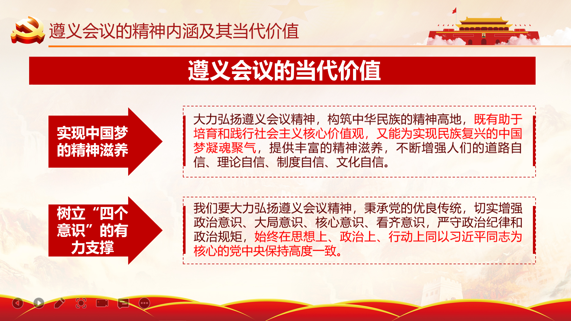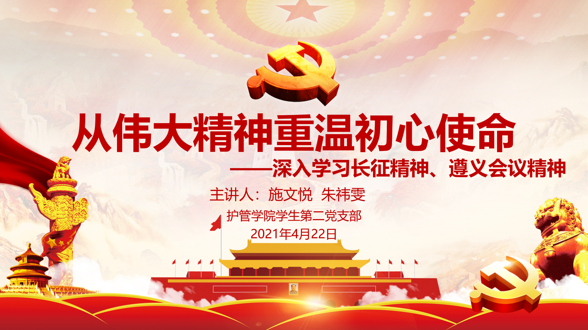 主讲人施文悦同学表示习近平总书记指出:“伟大的长征精神是中国共产党人革命风范的生动反映,我们要不断结合新的实际传承好、弘扬好。”在新的长征路上,依然有不少艰难阻碍、风险挑战。就比如此次新冠疫情,我国的国际地位得到了提升,但同时我们也受到了来自资本主义国家的打压。我们青年一代,作为新长征路上的主角,更需要从长征精神和遵义会议精神中汲取源源不断的前进动力,坚定信念,坚持独立自主,实事求是的精神,要在习近平新时代中国特色社会主义思想的指导下,在永不磨灭、永不褪色、永放光芒的长征精神和遵义会议精神的激励和鼓舞下,继续保持只争朝夕,不负韶华的精神状态,扎实地学好专业知识,把初心和使命放到学习中和即将面临的实习工作中,为将来的医疗工作打好基础,在我们自己的岗位上把中国精神贯彻到实处并弘扬传承下去,让中国精神永放光芒。