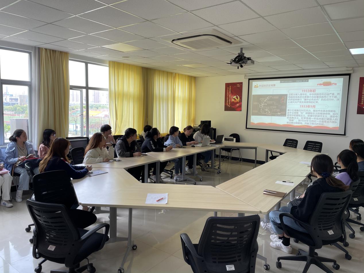 党日活动围绕学习长征精神和遵义会议精神,先后进行了理论知识学习和自由交流环节。理论知识学习部分,由朱祎雯和施文悦两位员工党员进行领学。首先,施文悦同学带领同学们回顾了长征的历史背景和长征的主要过程。接着通过观看视频,详细讲解了长征精神的主要内涵: