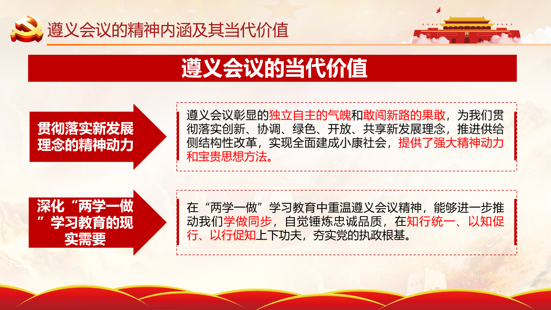 今年,中国共产党迎来了百年华诞。近百年的岁月流逝,苍茫大地早已换了人间,中国共产党也已成为世界上最大的执政党。那些铭记在心中的壮举、代代传承的优良传统、永载史册的宝贵经验……都已熔铸成永远流淌在共产党人血脉之中的符号与基因,如星辰北斗,熠熠生辉。在中国特色社会主义建设道路上,不可避免会遇到各种困难和风险。社会发展的复杂性,利益趋向的多样化,价值观念的多变性,都要求我们党不断寻求与长征精神和遵义会议精神对接的路径,将前辈们传承下来的精神融入到我们现在的学习、生活和工作中去,以坚定的共产主义理想和信念和不怕艰难险阻,艰苦奋斗的精神,激发我们为祖国事业贡献力量。
