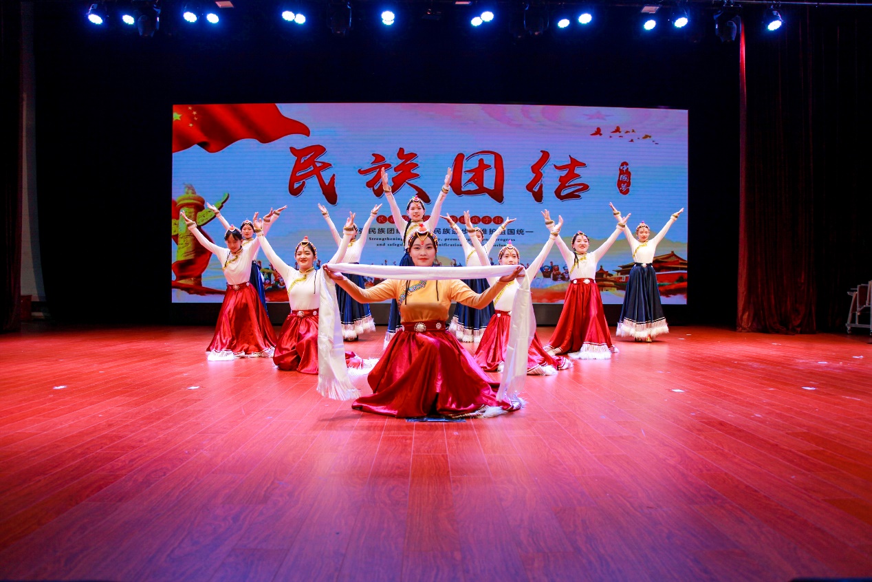 而后由附属卫校员工代表献上歌舞《再唱山歌给党听》。