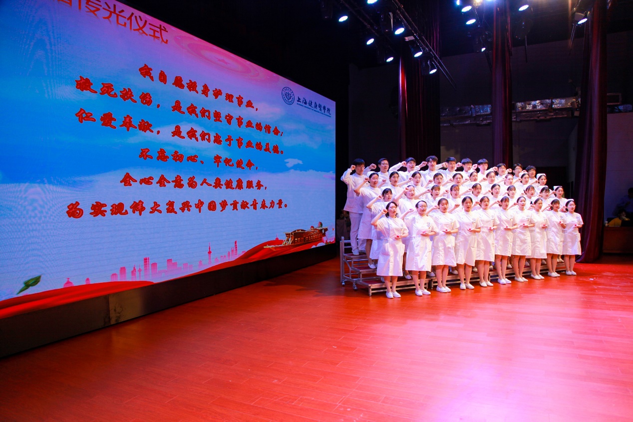 护理行业专家们庄严地为护生一一戴上圣洁的燕帽,并将手中的红烛传递给他们。同学们慎重地接过这个代表护理职业光辉的蜡烛,眼睛闪耀着微笑和坚定的目光。