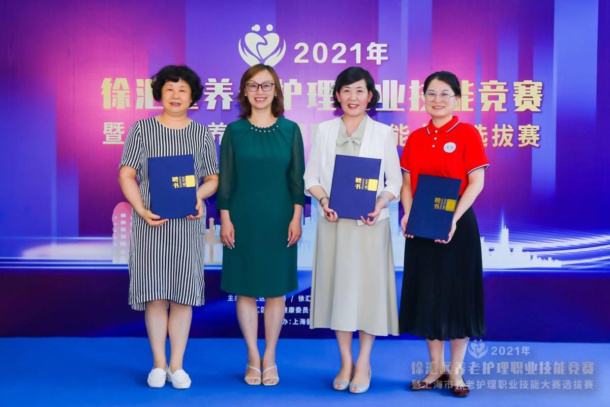 最后徐汇区民政局党组书记、局长郭艳楣上台为朱小凤女士(上海市第一社会福利公司党支部书记、副经理)、杨爱萍女士(永利官网专任教师)、曹文婷女士(永利官网专任教师)颁发了徐汇区养老服务机构护理职业技能专家聘书。