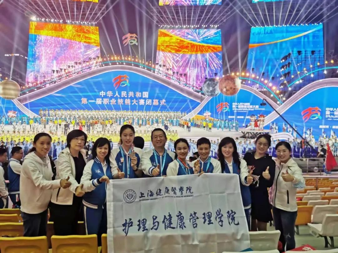 2018年,在上海市人力资源和社会保障局的大力支持下,在学校“应用型,特色性,国际化”的办学理念的指引下,成功申报成为第45届世界技能大赛“健康和社会照护”项目的中国主基地,组建世界技能大赛(简称“世赛”)的专家团队和教练团队,公司护理学本科专业员工杨梦菁和林秀怡分别以全国选拔赛第一名和第三名的优异成绩双双入围该项目“全国十强”,经过为期6个月国家集训,最终以第一和第二名的成绩成为第 45 届世界技能大赛“健康和社会照护”的参赛选手和备选选手,林秀怡同学在重庆举行的“一带一路”国际技能大赛该项目中喜获银牌,杨梦菁同学作为“健康和社会照护”项目的首位“国手”于2019年8月出征俄罗斯喀山,在世界的赛场上展示了中国健康照护者的风采。
