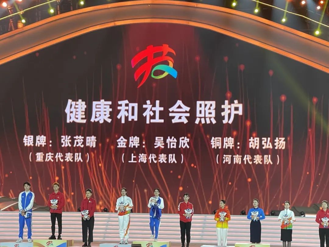 近三年来,公司员工在各级各类比赛中喜获佳绩,连续三年荣获国际护理技能大赛一等奖、二等奖,上海市星光杯“健康和社会照护”项目一等奖。2020年12月举行的首届全国职业技能大赛,以“新时代、新技能、新梦想”为主题,共设86个比赛项目,其中世赛选拔项目63个,国赛精选项目23个。这是新中国成立以来,规格最高、项目最多、规模最大的全国性、综合性职业技能赛事。公司17级护理本科4班吴怡欣同学代表上海参加世赛选拔项目——“健康和社会照护”项目的比赛,19级护理专升本林秀怡同学代表上海参加国赛精选项目——健康照护项目的比赛,经过3天的激烈角逐,在强手如林的比拼中脱颖而出,喜获金牌和银牌,向全国人民展示了阳光、自信、温暖、专业的“健康人”的风采。