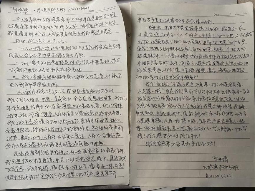 在讲座中,陈讲师用清晰简洁的话语向我们陈述党是如何站在以人为本和国家事业发展全局的角度,对“十四五”时期中国发展作出系统谋划和战略部署,做好“两个一百年”奋斗目标有机衔接,为全国各族人民取得全面建设社会主义现代化强国指明了前进的方向。“梦想足够持久,就会成为现实。”这对于当代青少年也有不少的启发。梦想并不是遥不可及的,只要我们不断地为之拼搏,为之努力,总有一天它会实现。因此,同学对于这次令人受益匪浅的讲座都有不少理解,纷纷拿起笔和纸,记录自己的感想。