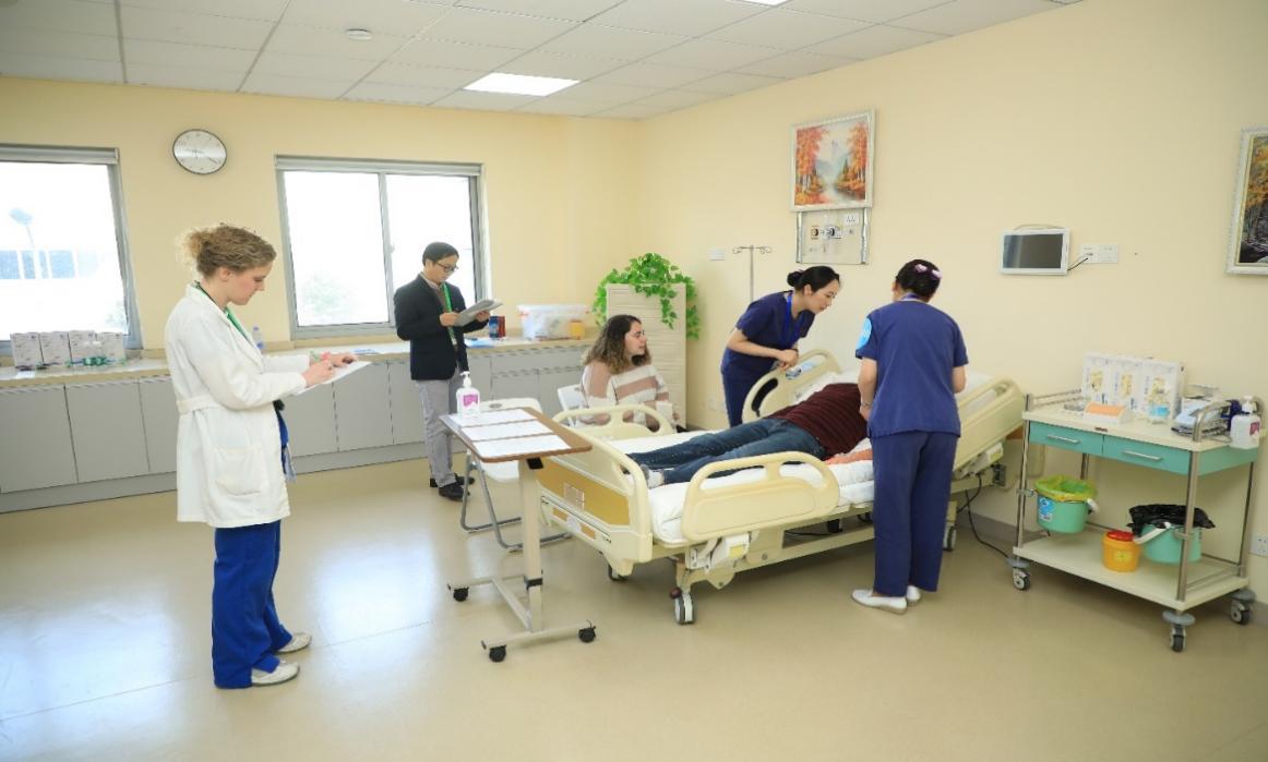 大赛参照世界技能大赛模式,竞赛设计以传统护理技能考核为基础,以案例引入、全英语沟通、团队合作为特点。在高仿真模拟情境下,两名选手通过分工合作,在规定时间内完成护理评估并向远程在线医生汇报病情、确认医嘱,完成护理工作任务,为患者及家属提供专业援助。评委们对选手的职业素养、评判性思维能力及护理基本操作水平等作全面评判。值得一提的是,本次案例的设计中首次尝试以远程医疗的形式,增加了标准化医生(SD)角色,旨在考察选手信息化技术水平以及运用医护专业关系的能力。